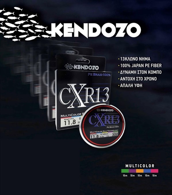 The successful Kendozo family of fishing products has been enriched this time, with a brand new series of a braided line, made of 13 strands. The Kendozo CXR13 braid is made of 100 Japanese origin, PE fibers and has been designed to withstand high tolerance. The 13 strands that make up the Kendozo CXR13 are tightly woven and offer to the angler instant feedback from the rig. It also presents high resistance to abrasion, zero water absorption, even after long hours of use. Also, its profile is perfectly round and consequently its soft to the touch texture, minimizes the noise generated, as the braid passes through the rod’s guides. Another important advantage of the specific weaving process of the CXR13 is its impressive knot strength, far exceeding the breaking limits compared to competitive braids in the same diameter. The Kendozo CXR13 series is available in a multi-colored version, with each color alternating every 10 meters. It is also available in several diameters and lengths 150 m – 300 m – 1000 m to choose the appropriate combination depending on the fishing technique we will carry out.